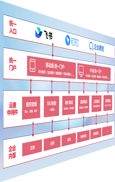 对协作平台提供支持服务,,,支持企业应用与协作平台对接,,,,包含组织同步、、消息集成、、待办集成等。。支持目前主流的协作平台:钉钉、、、企微和飞书。。。。